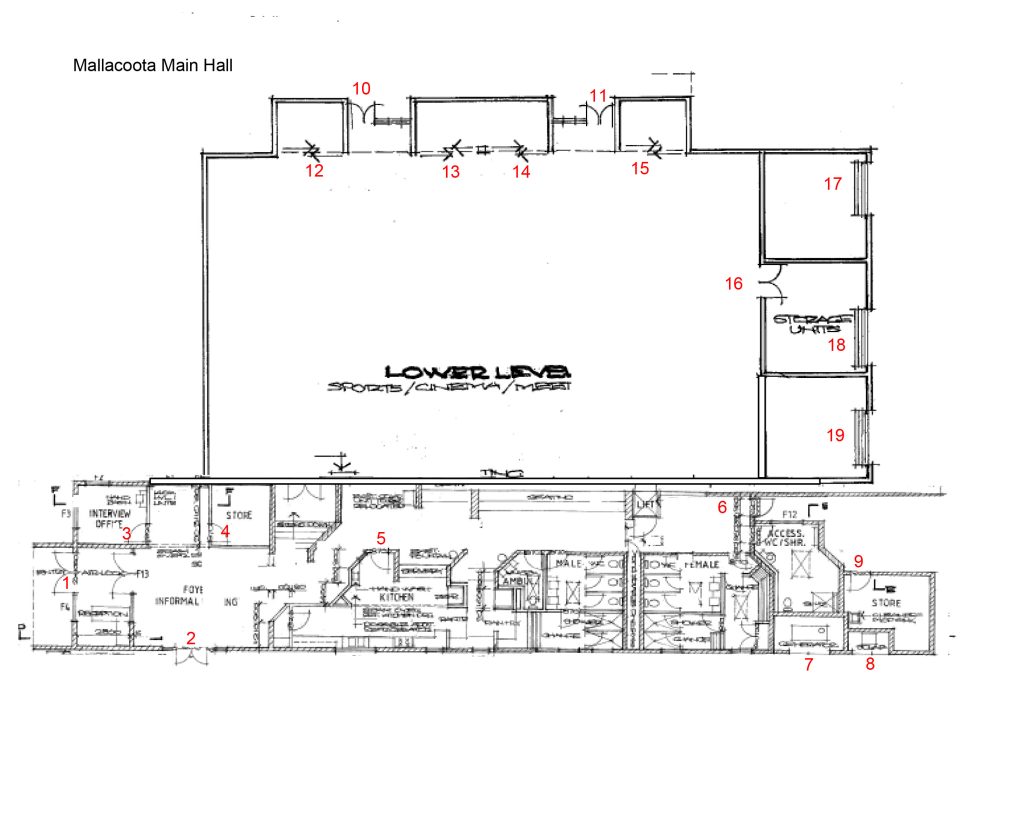Mallacoota Main Hall is a sports facility marked out for Basketball, Netball, Hockey/Soccer and Badminton. There is small kiosk and kitchen. There are changing rooms and showers for men and women.