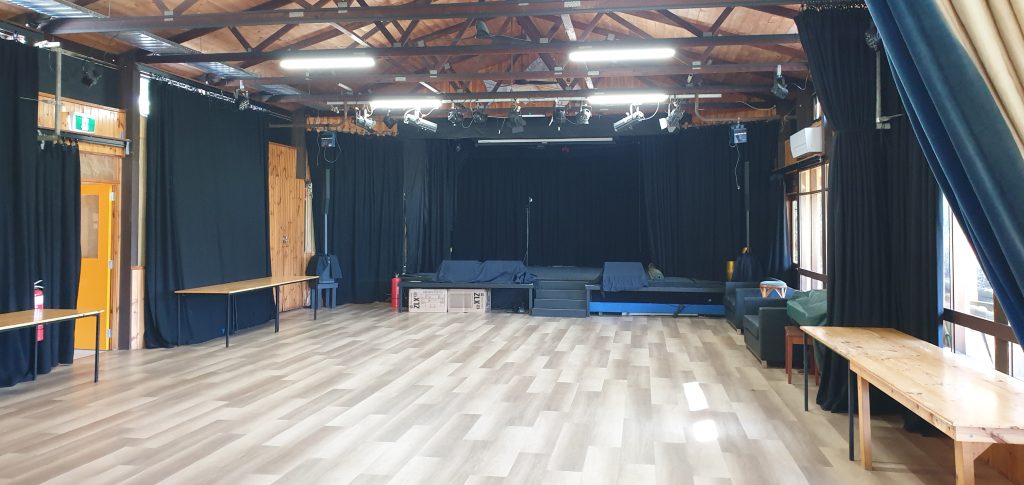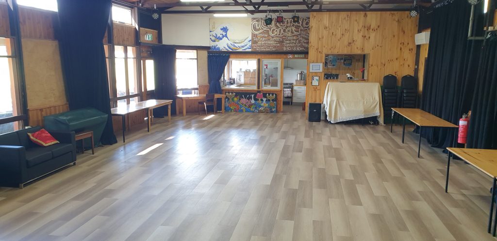 So if you are thinking of holding any sort of an event The Muddie is the place for you. In the winter you can choose to heat your event with our atmospheric wood heater or use the convenience of our reverse cycle air conditioning. The Muddie is fitted out with solar panels to minimize our carbon footprint. The auditorium has a stage, curtains, a fully equipped PA (and someone to drive it for you), a pull down projection screen, chairs to seat a hundred and your choice of trestle or conventional tables – all at no extra cost. Our kitchen is fully fitted out. We have crockery and cutlery for over eighty. If you wish to sell alcohol we will help you organize the license. A children’s playground is right outside the door to keep your kids happy.